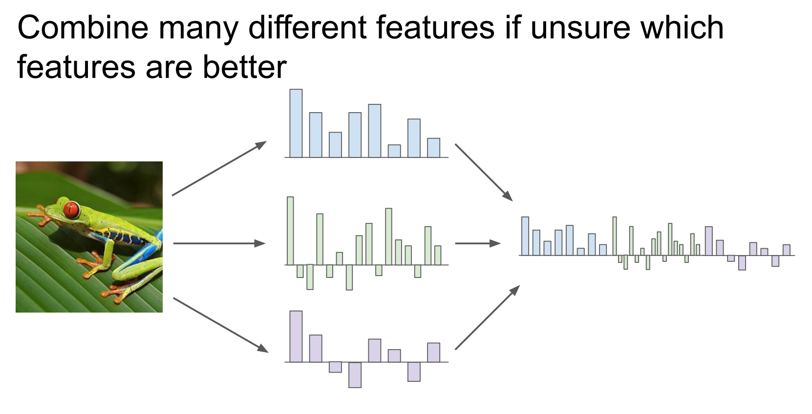 如果你不知道哪种手工特征最好,就把多种特征全部拼起来,让分类器自己学权重。